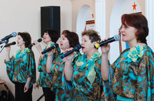 В этот день на базе районного Дома культуры состоялось два мероприятия. Первое - в 10.00 прошло с участием наших ветеранов, тех кто в годы Отечественной войны трудились в тылу. Им, руководством района, были вручены юбилейные медали в честь 70-летия Победы, а именитые артисты исполнили для ветеранов их любимые песни. Нашу школу представлял прославленый коллектив - народный вокальный ансамбль "Россияночка" (руководитель Киселева А.Н.).