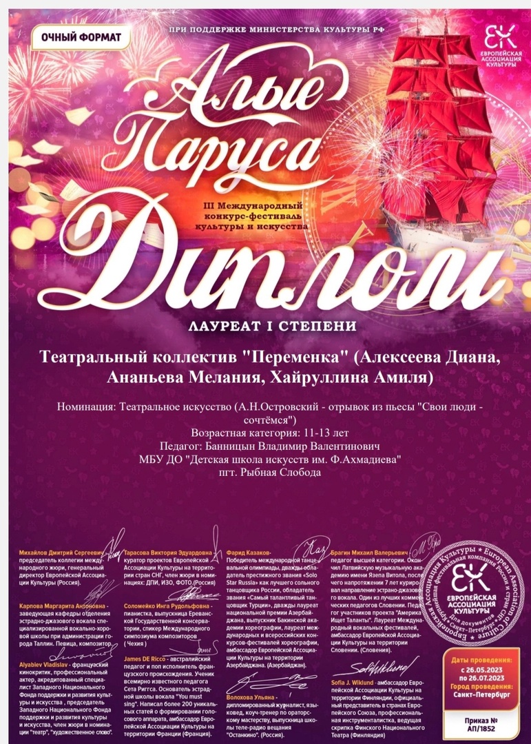 Победа воспитанников нашей школы на конкурсе "АЛЫЕ ПАРУСА"