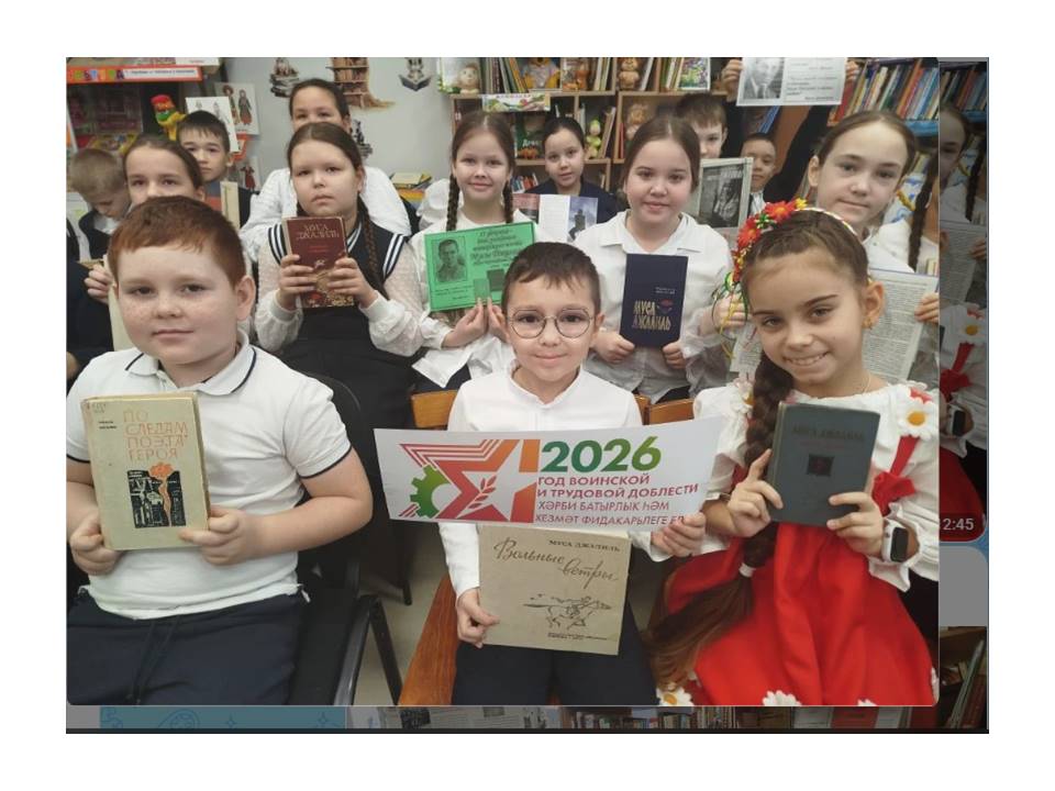 Муса Җәлилнең тууына 120 ел тулу уңаеннан үткәрелгән "Мөһим нәрсәләр турында сөйләшүләр" интеграцияләнгән дәресе "Герой-шагыйрь!", 3И сыйныфы мәктәп китапханәсендә.