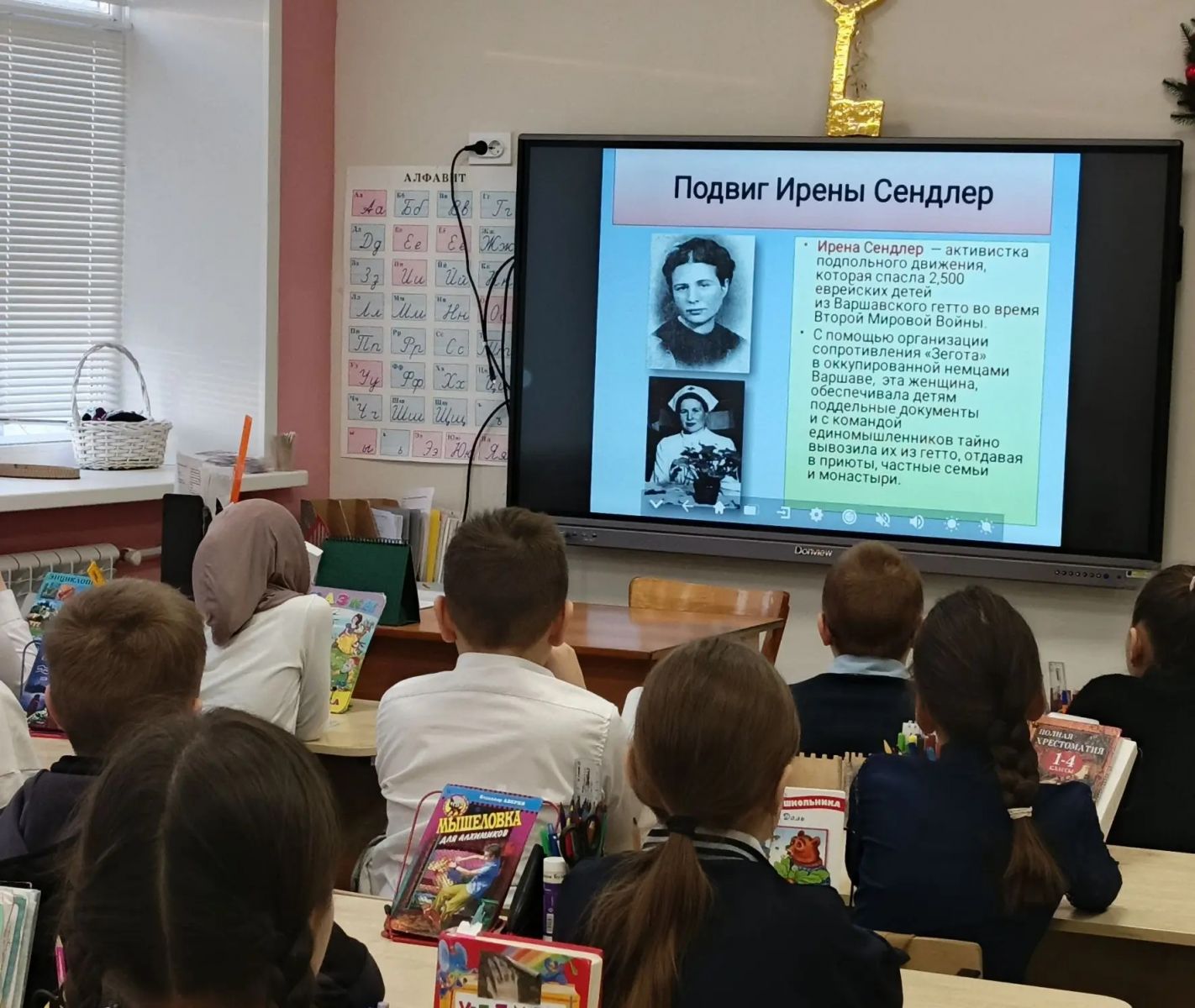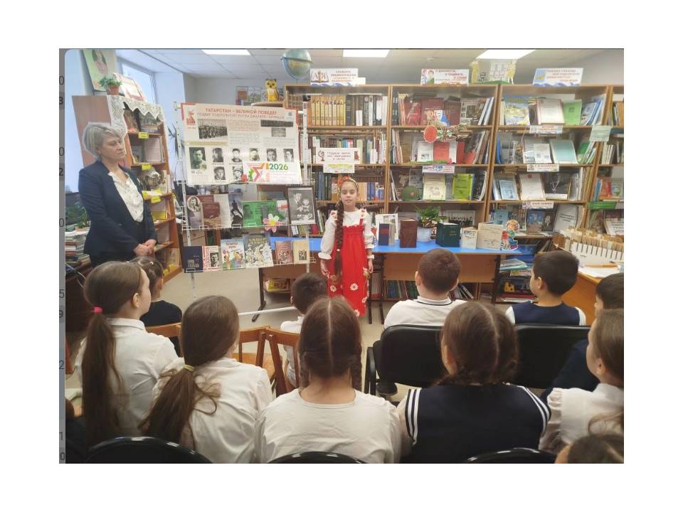 Интегрированный урок "Разговоры о важном" к 120 летию со дня рождения Мусы Джалиля "Поэт-герой!", 3И класс в школьной библиотеке.