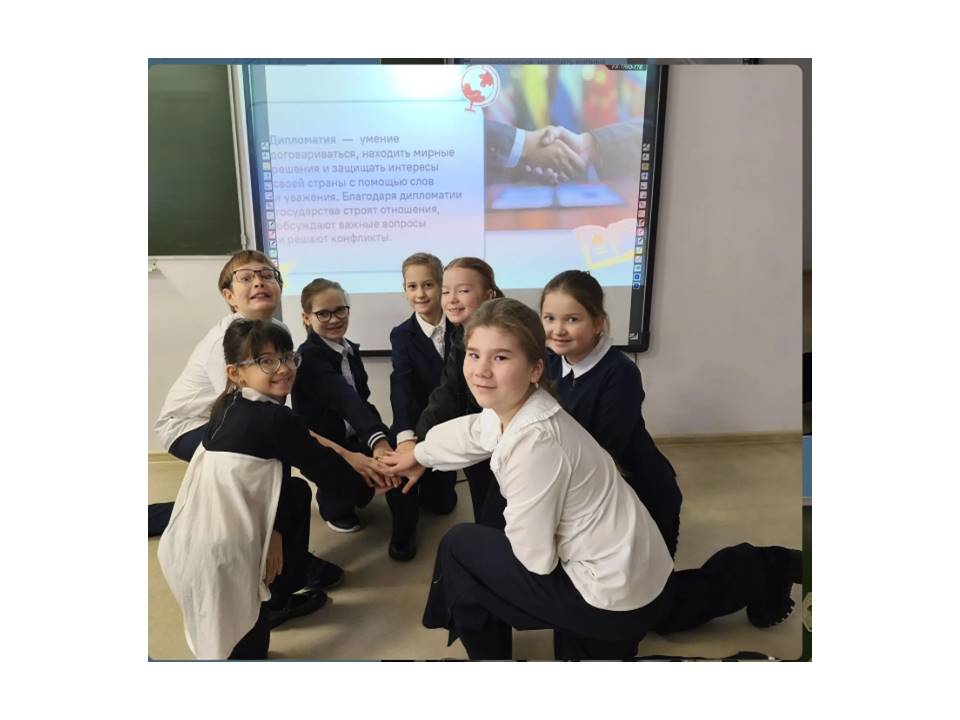 На занятии «Разговоры о важном» 9 февраля педагоги и учащиеся МБОУ «Рыбно-Слободской гимназии №1» говорили о дипломатии как о ключевом институте международных отношений и государственной службы. Успешно решать задачи своей деятельности дипломатам позволяет сочетание патриотизма, личных и профессиональных качеств. Применение принципов и приёмов дипломатии в повседневной жизни помогает договариваться, вести конструктивный диалог, решать общие проблемы и сотрудничать ради достижения общих целей.