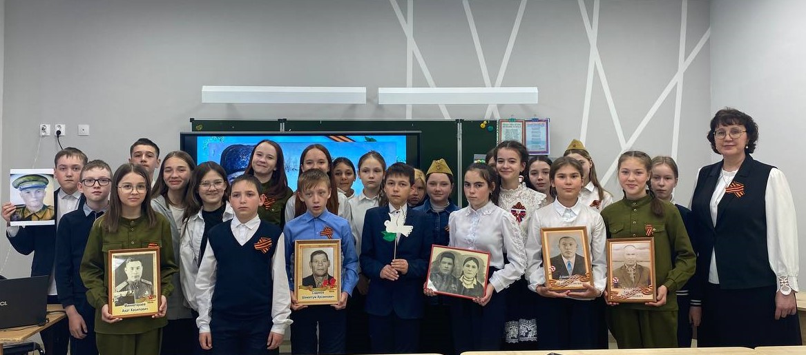 5Б сыйныфында Җиңү көненә багышланган «Беркем, бернәрсә онытылмас!» чарасы үткәрелде. Балалар Бөек Ватан сугышында катнашкан бабалары, туганнары турында горурлык белән сөйләделәр. Укучыларның бер төркеме Җиңү символлары турында сөйләде. Шулай ук Җиңү язы турында шигырьләр сөйләп, җырлар җырладылар. Чара бер минут тынлык белән тәмамланды. Мәңге хәтердә!..