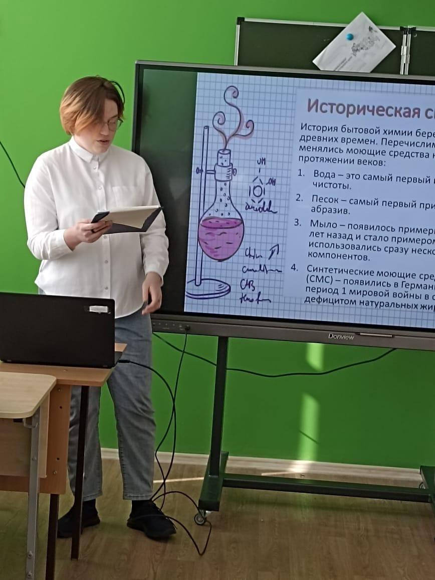 Не менее интересную работу представила ученица 9А класса Мазитова Вероника. Тема ее проекта "Стоит ли верить рекламе моющих средств для посуды?" Она сравнила три самых популярных средства для мытья посуды и сделала выводы. Ее работа имеет практическую направленность.