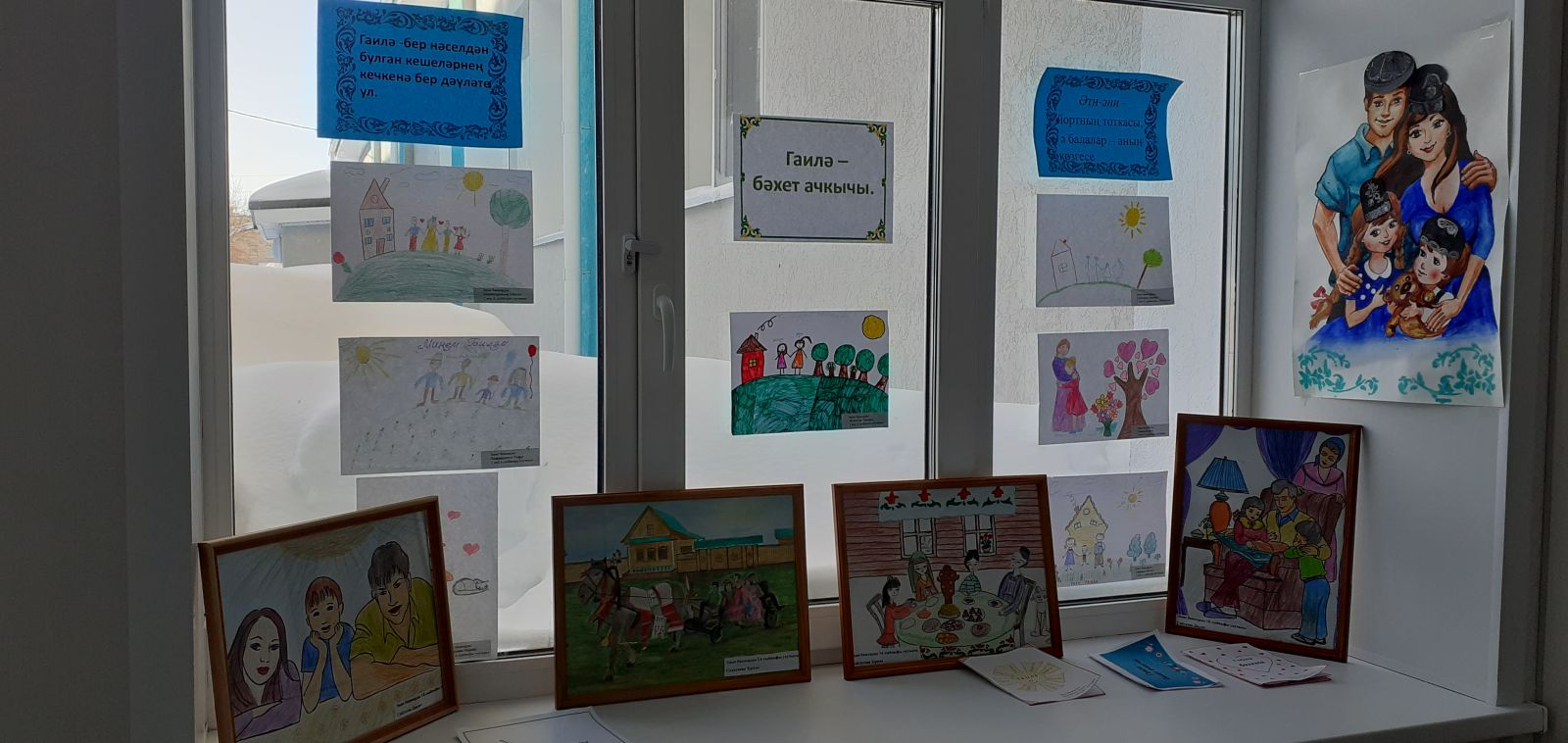 В гимназии в рамках Недели татарского языка и посвященная Году семьи открылась выставка художественных работ .