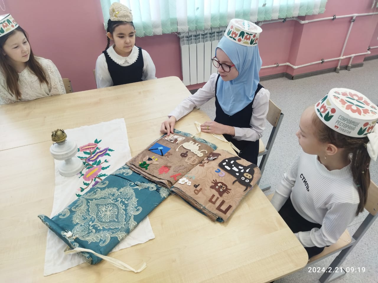 Башлангыч сыйныф дәресләрендә әкиятләр сәхнәләштерделәр, милли киемнәр рәсемен ясадылар, мәкаль-әйтемнәр буенча китапчыклар, лэтбуклар ясадылар, татарча мультфильмнар карадылар.