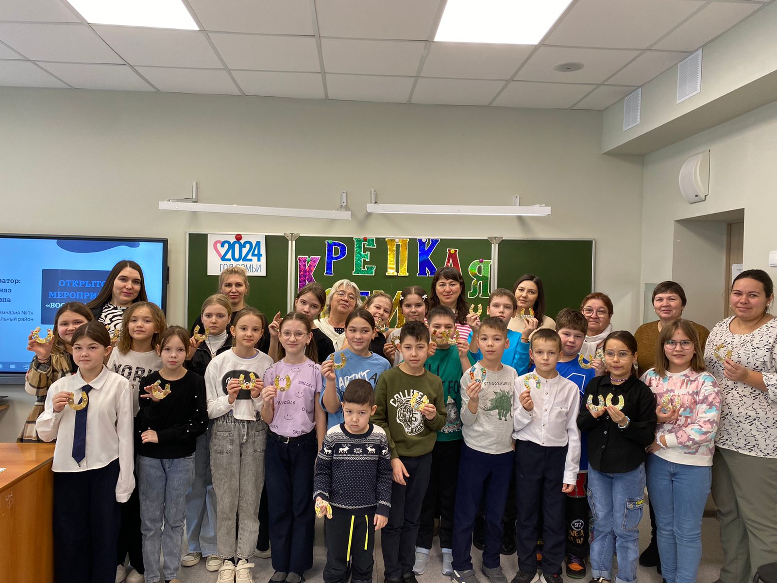 На праздничном мероприятии присутствовали родители и дети, администрация и педагоги школы. Общий праздник под названием «Крепкая семья – залог будущего» прошел с участием педагогов дополнительного образования МБУ ДО «Центр детского творчества». Ребята вместе с мамами смастерили чудо-подковы на счастье, пели песни и получили прекрасную возможность изучить, на чем же держится семья. И в завершении мероприятия учащиеся вместе с родителями приняли участие в церемонии спуска Государственных флагов и исполнении гимнов РФ и РТ.