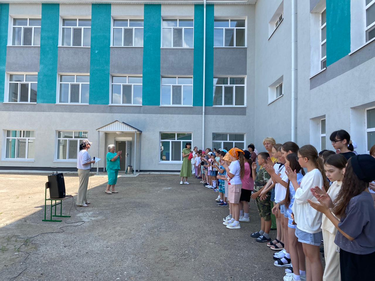 С раннего утра школьные классы наполнились детским смехом и веселым шумом. Традиционная организационная линейка, зарядка, завтрак - так начался насыщенный лагерный день.Воспитатели поделили детей на отряды, провели инструктаж по технике безопасности в пришкольном летнем лагере.