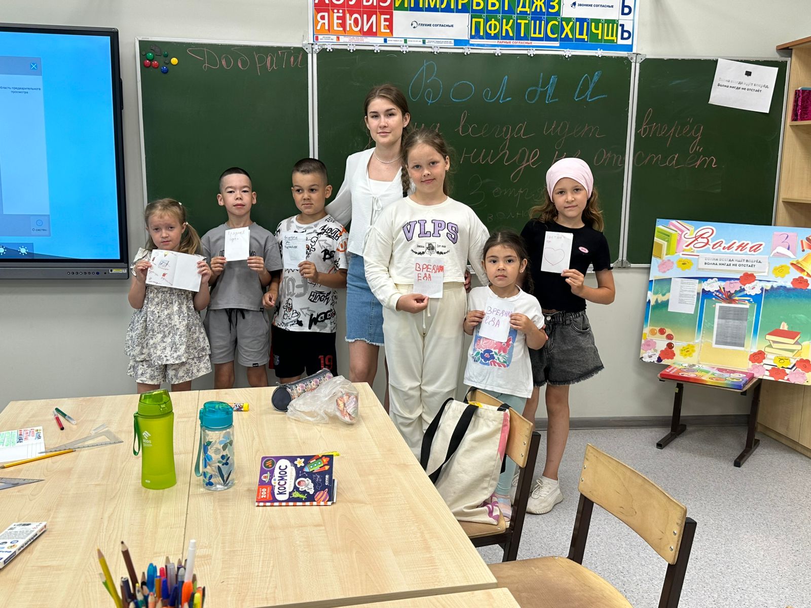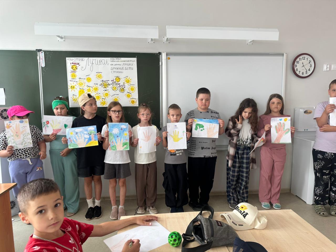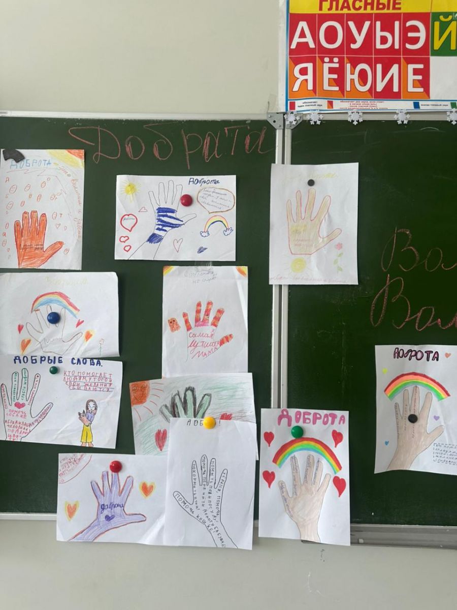 Каждый участник получил лист бумаги, карандаши и фломастеры. Задачей было нарисовать радостный рисунок внутри контура ладошки. Внутри этой «ладошки доброты» дети написали о добром деле, которое они совершили совсем недавно, или о том, какое доброе дело им больше всего нравится делать. После завершения творческой работы, ребята представили свои рисунки старшему вожатому, поделившись своими добрыми историями.