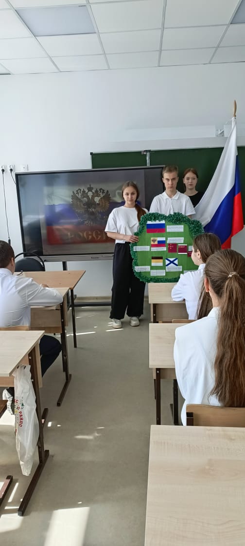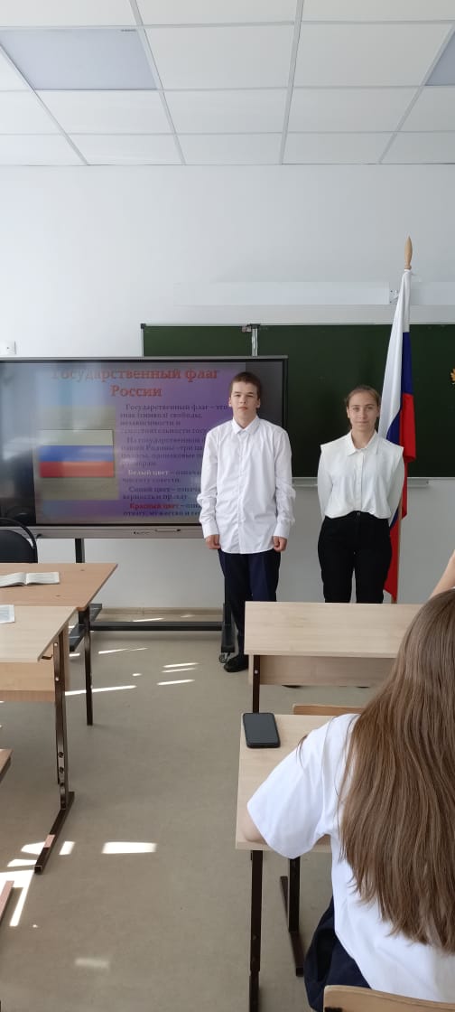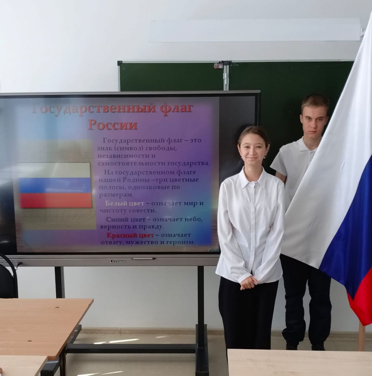 Ел саен 22 августта "Дәүләт флагы көне" билгеләп үтелә. 9 сыйныф укучылары, сыйныф җитәкчеләре И.В. Малямова белән бергә, 1 нче гимназиягә бу бәйрәмгә җыелдылар. Флагның барлыкка килү тарихын гына искә төшермәделәр, "РФ Дәүләт флагы турында" Федераль законны да беркеттеләр. Флагны кайда эләргә мөмкин , ә кайда ул даими күтәрелгән һәм бу законны бозган өчен нәрсә була. Чара күрсәткәнчә, балалар ял иткәннәр һәм яңа көчләр белән яңага өйрәнергә телиләр.