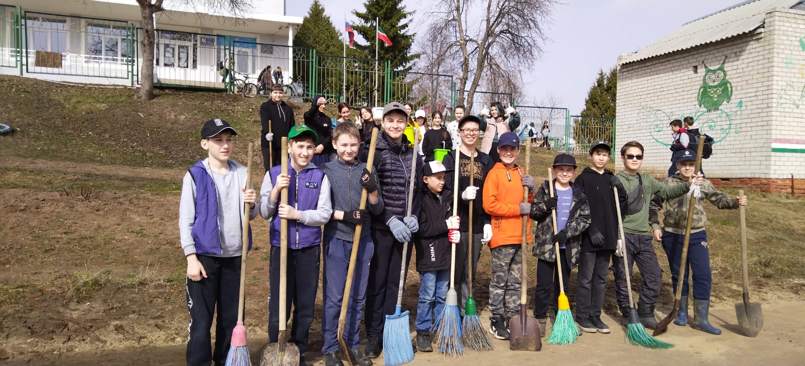 Бүген 6Б сыйныфы укучылары мәктәп янындагы территорияне чистарту буенча санитар-экологик ике айлыкка старт бирделәр.