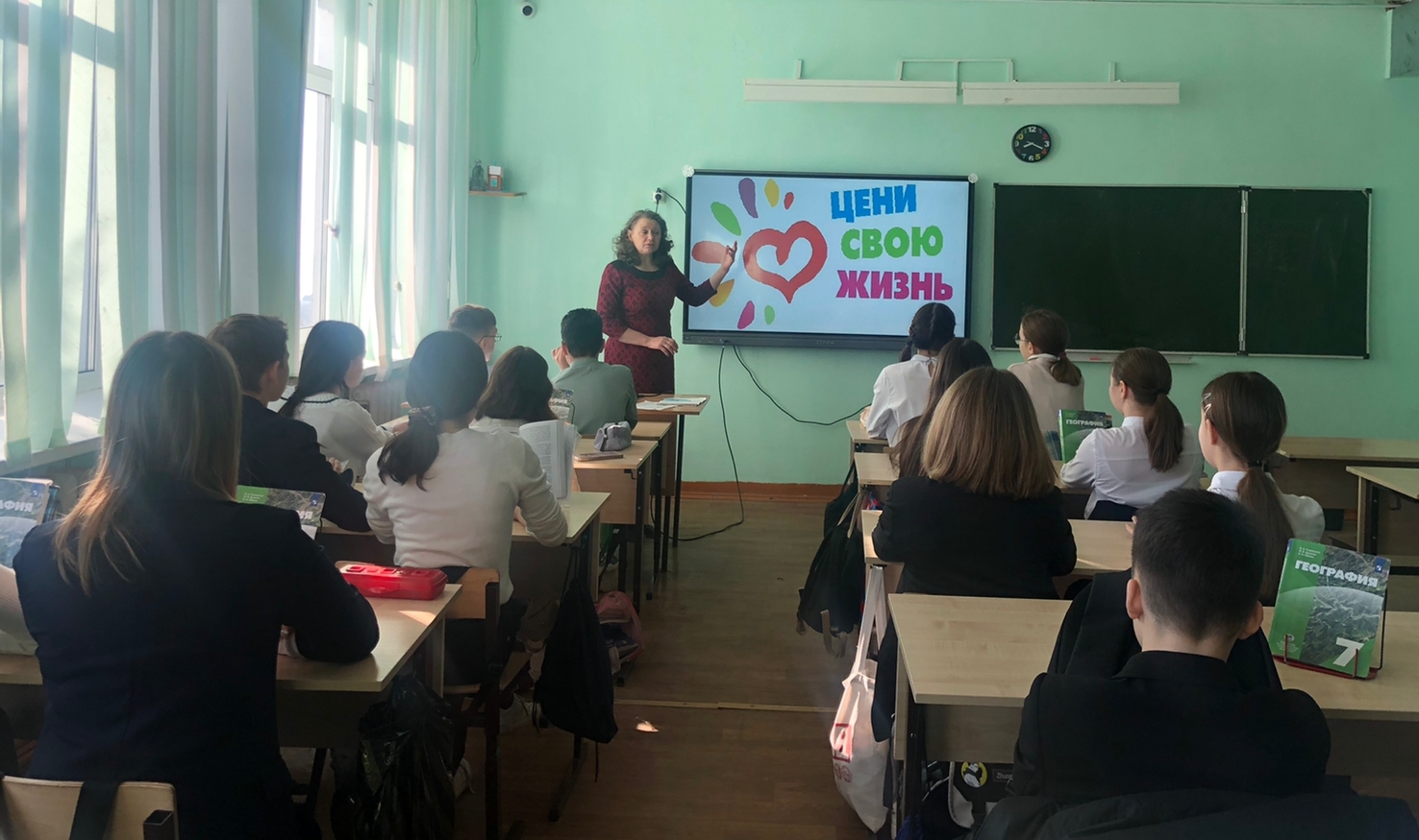 Яңа чирекнең беренче дүшәмбесе Росия Федерациясе һәм Татарстан Республикасы гимннарын башкарып, флаглар күтәреп башланып китте. Мөһим әйберләр турында сөйләшү дәресләре «Җир көне»нә багышланды. «Спорт һәм табигатькә сакчыл караш — илебезнең чәчәк атуының нигезе» — дип сәламләде укучыларны легендар хоккейчы Фетисов В.А.