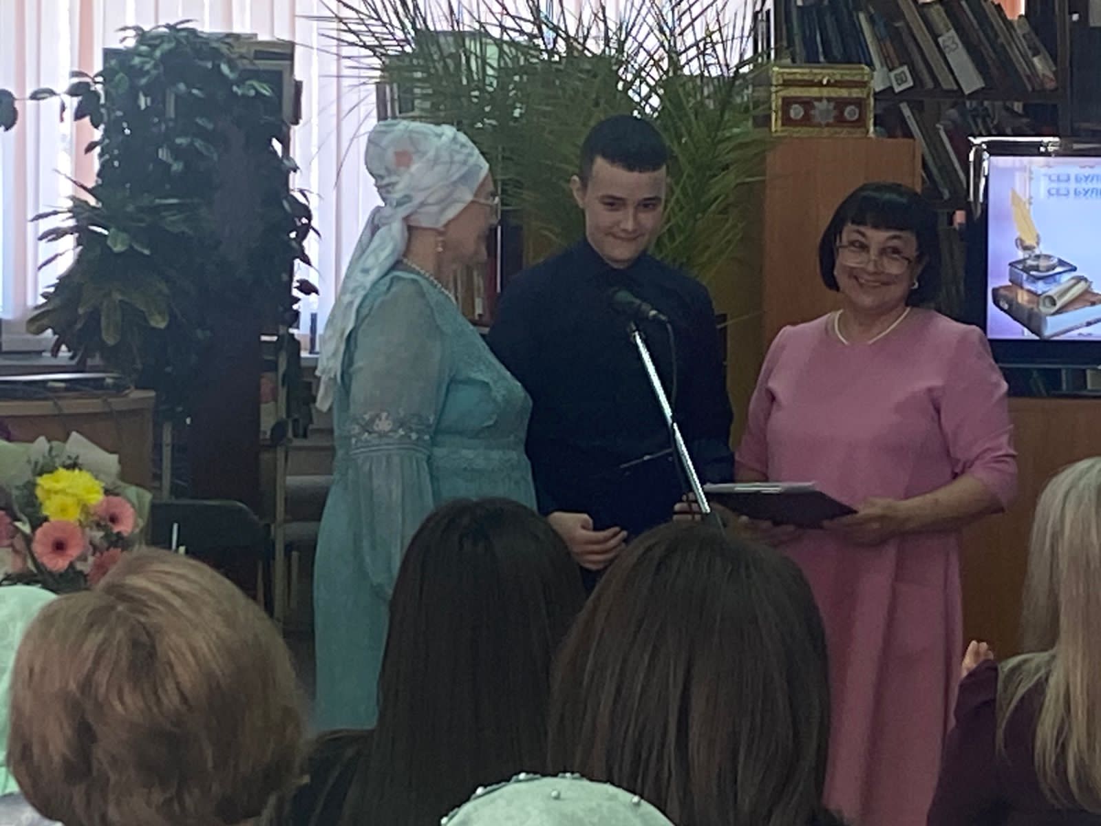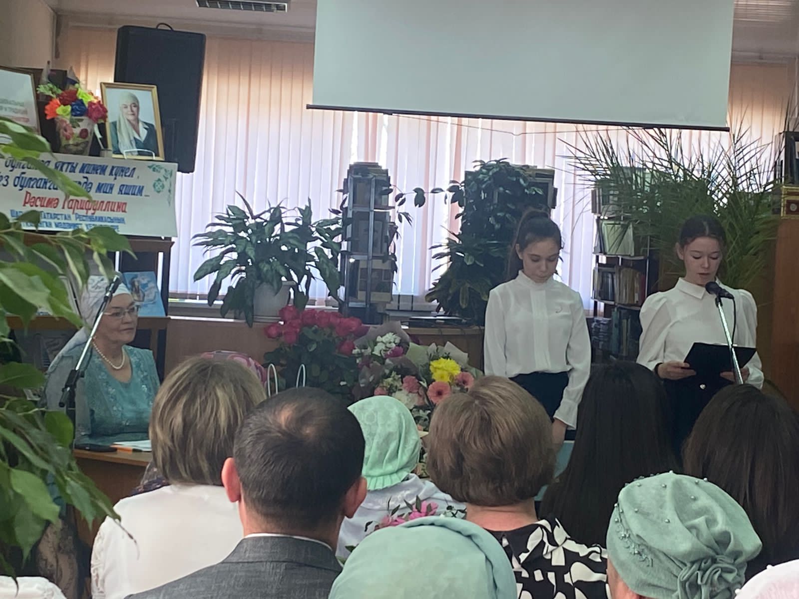 Бүген гимназиянең 8 нче сыйныф укучылары үзәк китапханәдә атказанган мәдәният хезмәткәре, язучы, шагыйрә Рәсимә Әхмәтзакир кызы Гарифуллинаның 65 еллык юбилее уңаеннан үткәрелгән кичәдә катнаштылар.