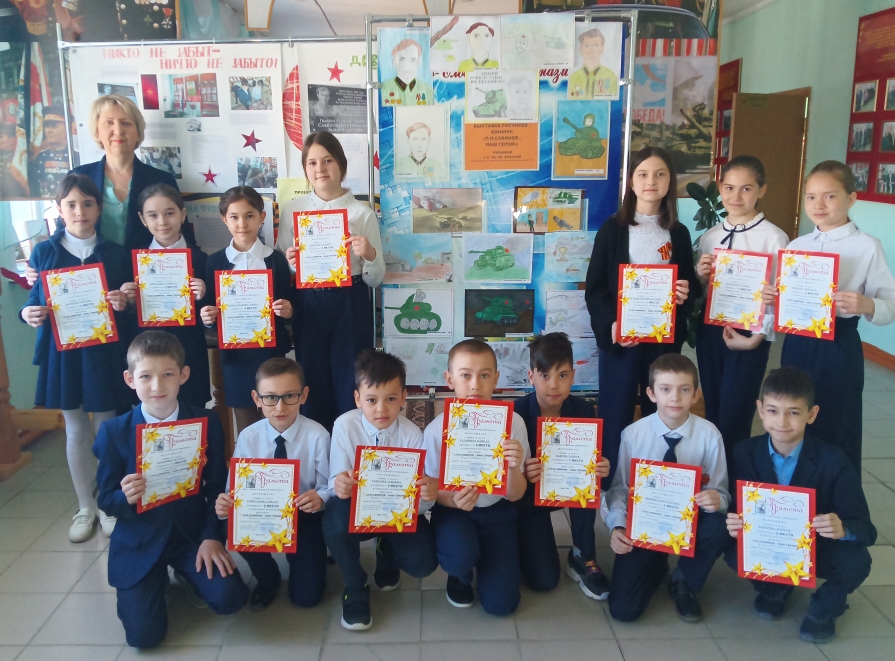В школьном музее боевой славы им.П.И.Савинова состоялось награждение победителей конкурса рисунков, посвященного 77-летию Победы. Конкурс проводился среди 4 классов. Руководитель музея Чеботарева Н.Н. вручила детям яркие дипломы. Приглашаем посетить выставку, оформленную около музея.