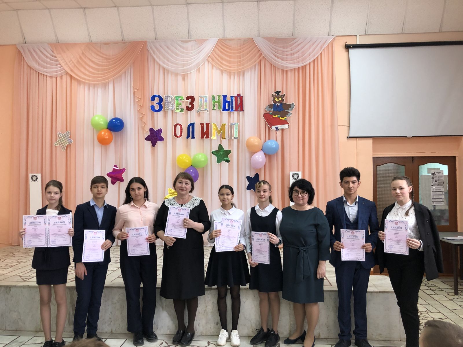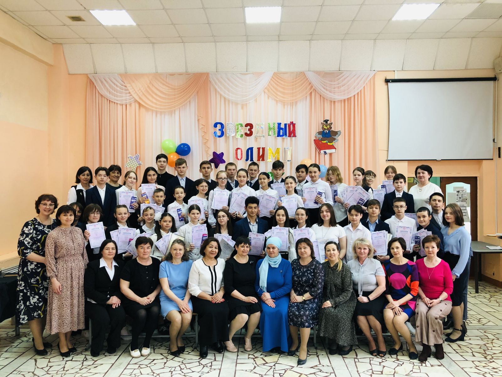 28 апрельдә гимназиядә район һәм республика этабының җиңүчеләрен һәм призерларын котлау тантанасы үтте. Бу бәйрәмдә 46 укучы һәм 26 укытучы катнашты. Тантана гимназиянең гимнын башкару белән башланып китте. Укыту буенча директор урынбасары Крюкова Л.Ю. җиңүчеләрне котлады һәм уңышлар теләде. Гимназистлар муниципаль этапта -72, Республика этабында — 5 призлы урын яуладылар. Җиңүчеләрне бүләкләү концерт номерлары белән үрелеп барды. Афәрин, гимназиянең укытучылары һәм сәләтле укучылары!