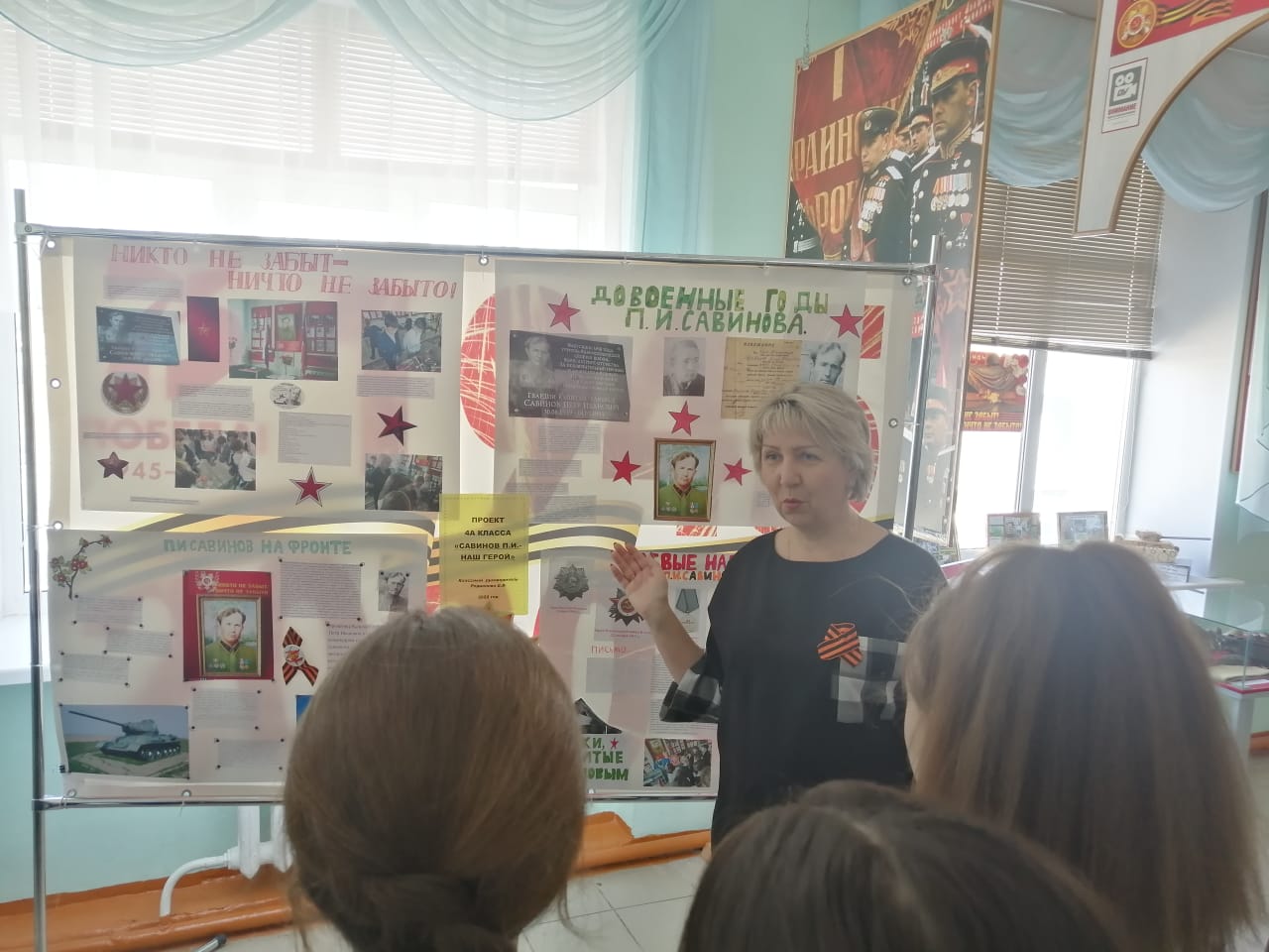 В преддверии празднования 77-й годовщины со дня Великой Победы в гимназии были проведены экскурсии в школьный музей им. П.И.Савинова (руководитель Н.Н.Чеботарева). Наш музей содержит богатый материал. Экспонаты, подаренные основателем музея, племянником Петра Ивановича, Владимиром Андреевичем Савиновым, не могут оставить равнодушными посетителей. Ребята с большим вниманием слушали рассказ Натальи Николаевны, задавали вопросы, получили много полезной информации. Пусть будет вечной о героях память!