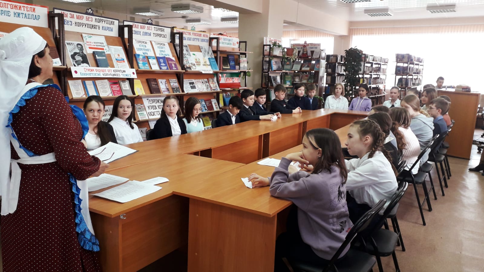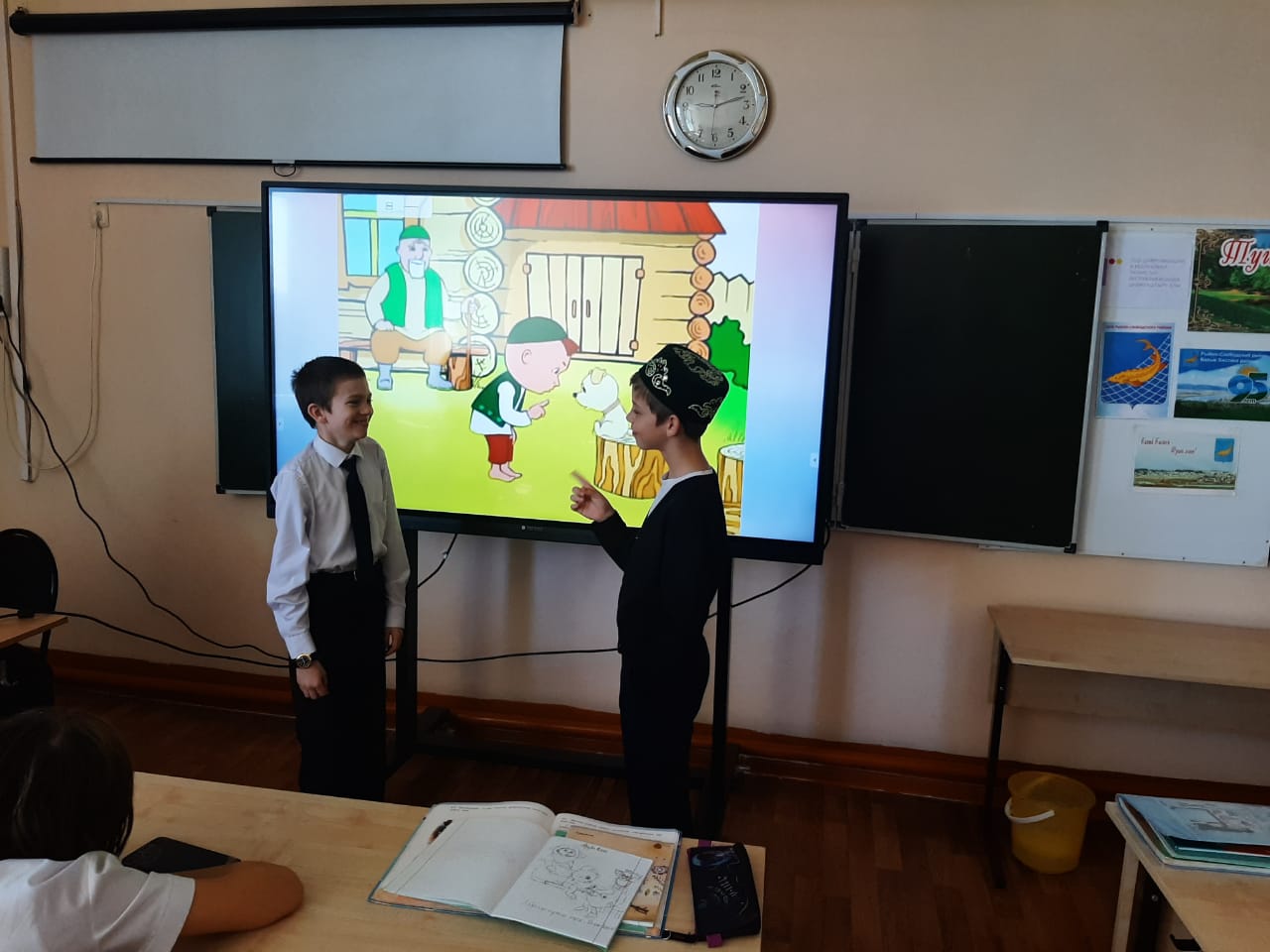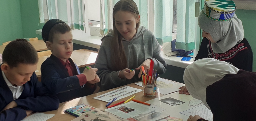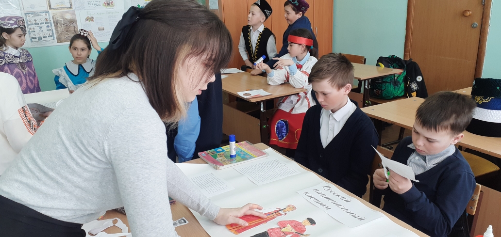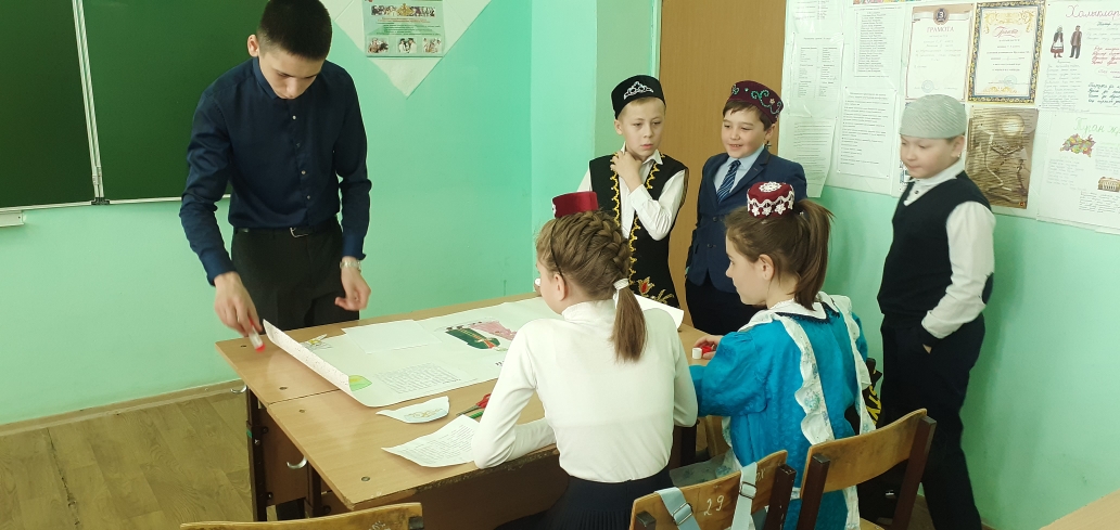 4 В сыйныфы «Россия халыкларының милли киемнәре» темасы буенча проектлар якладылар. Беренче группа — «Татар милли киемнәре», икенче — «Рус милли киемнәре», өченче- «Таҗик милли киемнәре» турында чыгыш ясадылар. Укучылар үзләренең проект темасына туры китереп милли киемнәр кигәннәр иде. Проектлар кызыклы һәм матур килеп чыкты. Сыйныф җитәкчесе Капарулина Г.Н. чыгышларны өстәмә мәгълүмат белән тулыландырып торды.