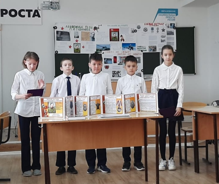 4А сыйныфы укучылары сыйныф җитәкчесе Родионова Е.В. җитәкчелегендә, безнең мәктәпне тәмамлап киткән, танкист Савинов Петр Ивановичка багышланган проектлар якладылар. Балалар районыбызның атаклы шәхесе турында бай эчтәлекле материал җыйганнар. Алар Петр Ивановичның тормышы, аның батырларча үлеме турында группалап сөйләделәр. Бу кеше турында хәтер мәңгелек! Мәктәп музее җитәкчесе Чеботарева Наталья Николаевна 4А сыйныфы укучылары экскурсияләр үткәрә алулары турында әйтте. Икенче атнадан 9 Майга багышланган экскурсияләр мәктәп музеенда эшли башлый. Проектлар югары бәяләнде.