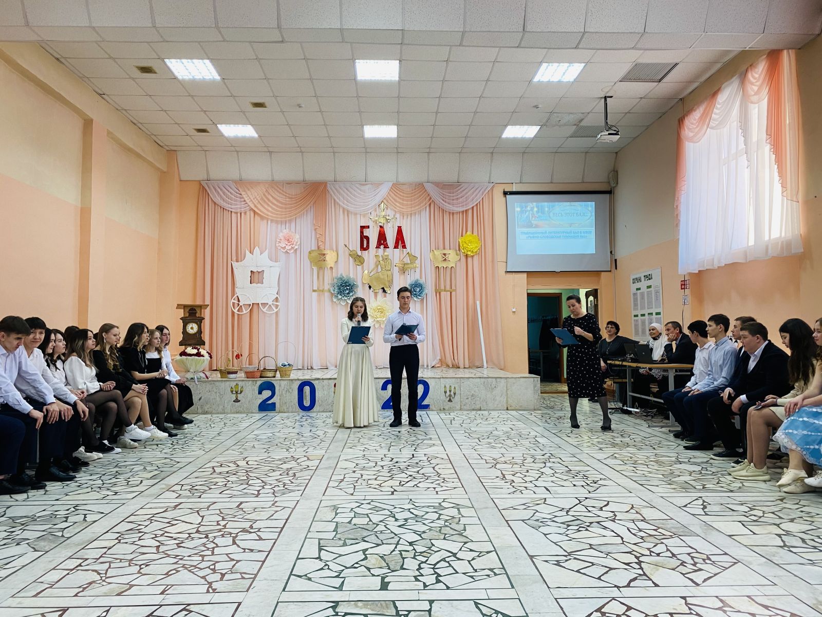 По уже сложившейся традиции 17 марта в гимназии прошел бал. Очарование празднику придавали и наряды милых девушек, и строгие смокинги немного смущавшихся юношей, и декорации - вся обстановка способствовала созданию хорошего настроения. Ведущие, ученица 9 Б класса Сафина Ильдина, выпускники 11 А класса Гиниятов Марат и Сахаров Артур, поведали зрителям историю проведения балов, ученики 10 класса Ананьева Анна и Нигматзянов Шамиль продемонстрировали собравшимся азы полонеза. Приятно удивил зрителей своим выступлением ученик 9 класса Сибгатуллин Фаиль, покорив всех игрой на гитаре.Блистали нарядами, кружились в вальсе, покоряли и вдохновляли сердца присутствующих на весеннем балу юные танцоры. В зале царила атмосфера XIX века. На вечере все обращались друг к другу не иначе как «дамы» и «господа». И ни один танец не был прерван звучанием мобильного телефона. Все IT-технологии XXI века гости оставили за пределами зала. Только традиции золотого века соблюдались в этот вечер.Бал состоялся, а значит, он стал очевидным свидетельством творческого содружества педагогического и ученического коллективов гимназии.