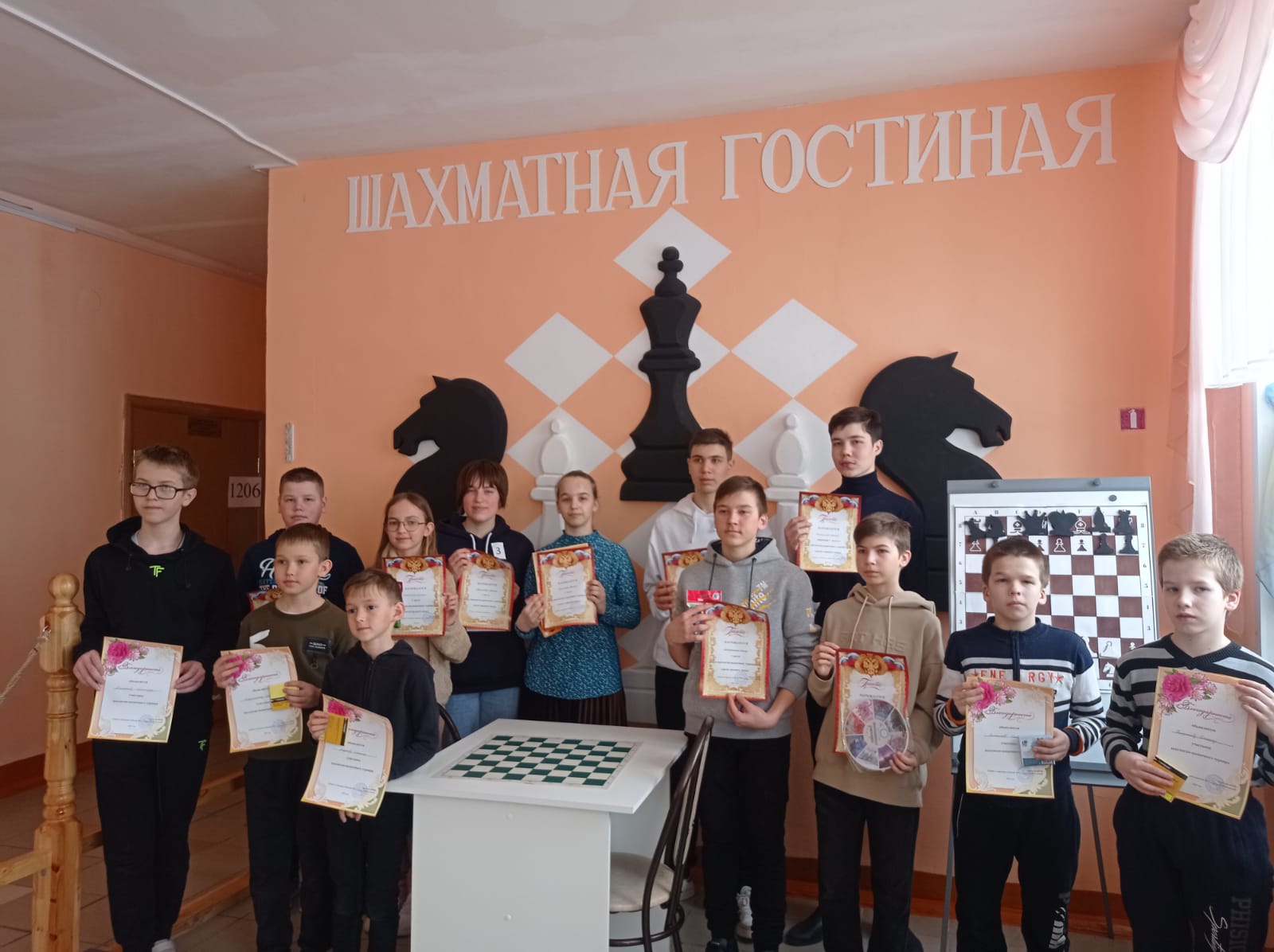 Шахматы. Возрастная группа среднего школьного возраста: 1 место - Пузырькова Виктория, 2 место - Хазиев Самир, 3 место - Хамидуллин Тимур.