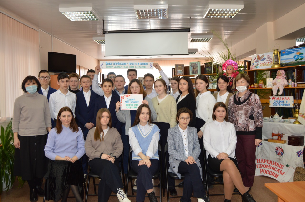 16 нчы мартта 9Б сыйныфы укучылары үзәк китапханәдә «Мин һәм минем булачак һөнәрем» исемле чарасында катнаштылар. Укучылар видеоролик карадылар, тестирование үтеп, үзләренә нинди һөнәр туры килгәнен белделәр һәм кроссворд чиштеләр.