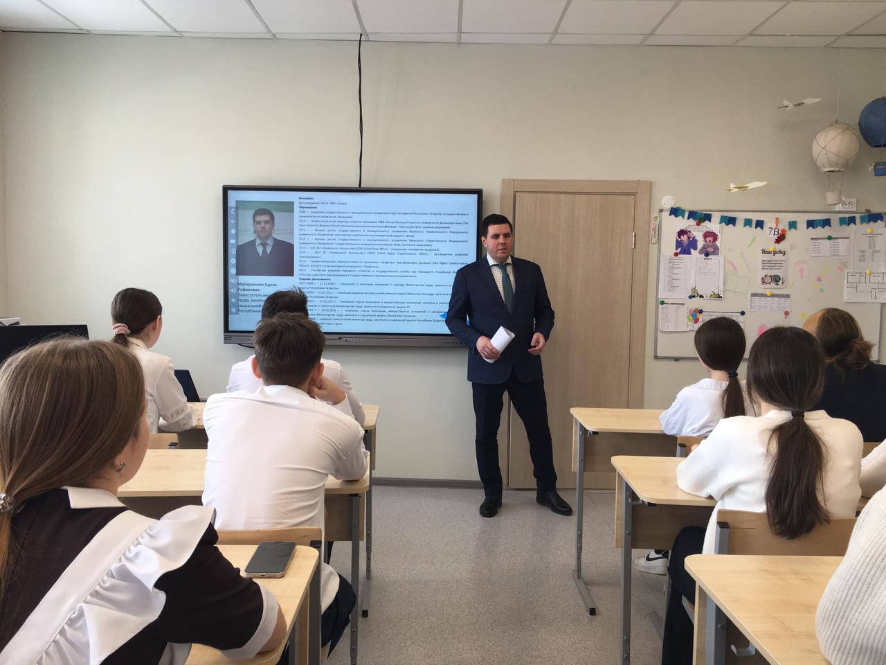 18 марта заместитель министра, труда занятости и социальной защиты Республики Татарстан Адель Мубаракшин провел Урок Цифры для учащихся 11 класса Рыбно-Слободской гимназии № 1. Занятие было посвящено мессенджерам.Цель урока заключалась в формировании представления о современных цифровых коммуникациях, применяемых в обществе, а также знакомстве с правилами делового и личного общения в цифровой среде. Кроме того, ученики ознакомились с профессиями, связанными с созданием и разработкой средств цифровой коммуникации.Отметим, что «Урок Цифры» – это всероссийский образовательный проект в сфере информационных технологий.