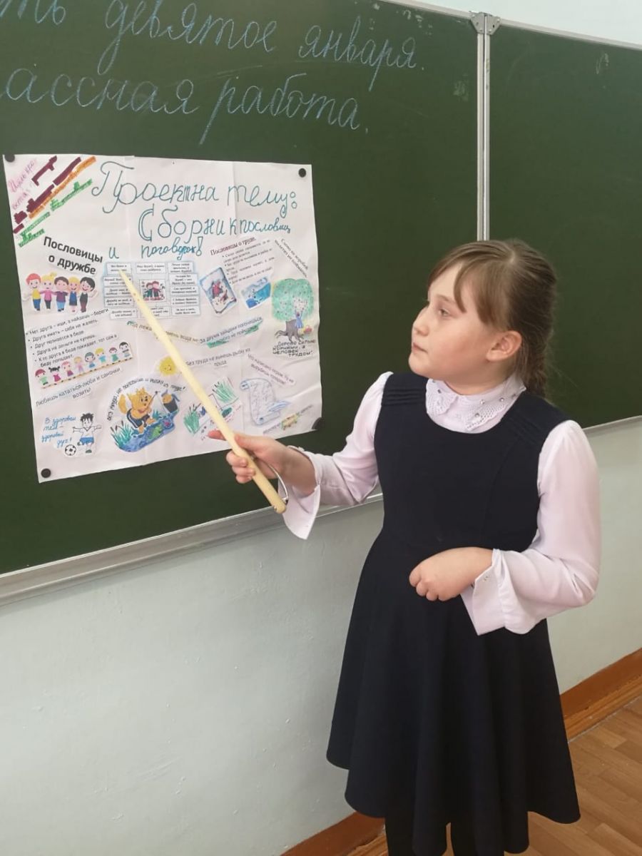3 февраля в рамках месячника, посвященного Году родных языков и народного единства ученики 3Б класса под руководством Фалиной Д.Г. защищали проекты «Мой любимый писатель», «Сборник пословиц и поговорок».