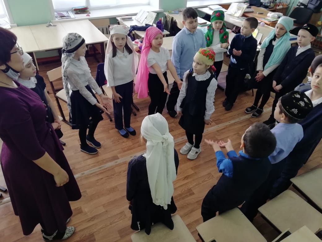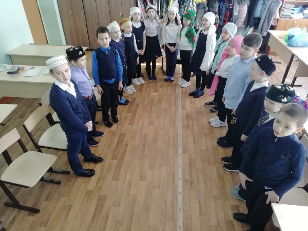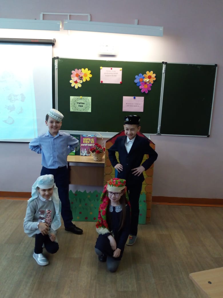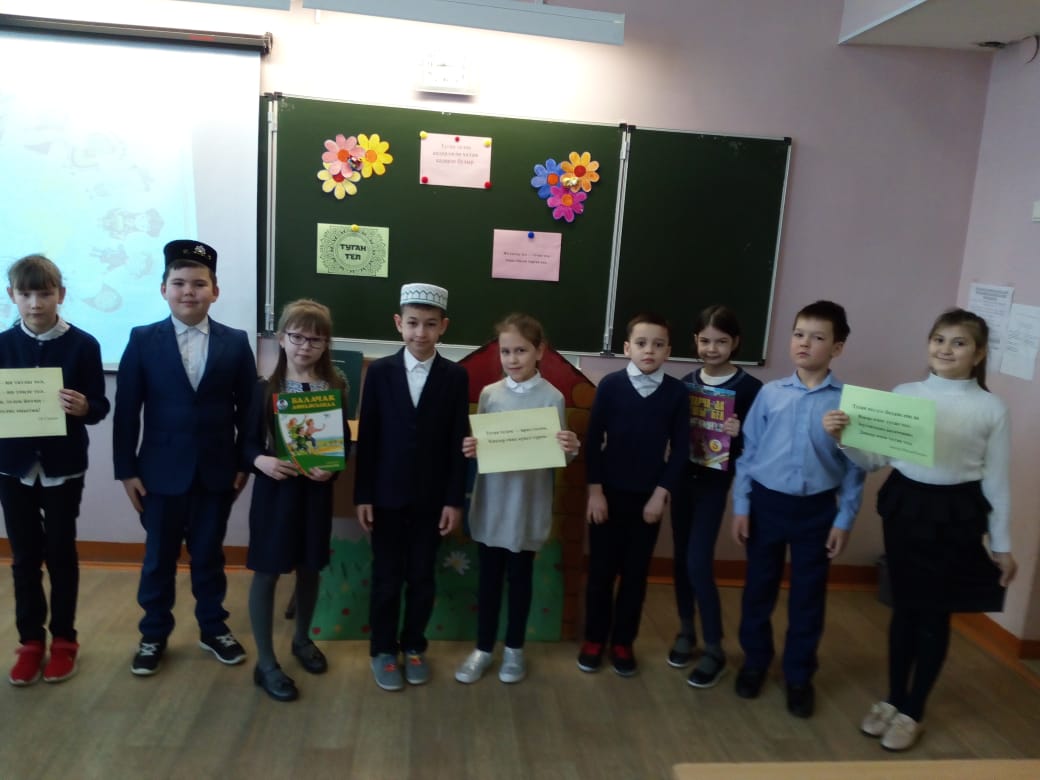 В МБОУ “Рыбно-Слободская гимназия №1” учитель родного языка Салахова Р.Г. с учениками 3А класса провела мероприятие “Народ, дорожащий родным языком, будет дорог”