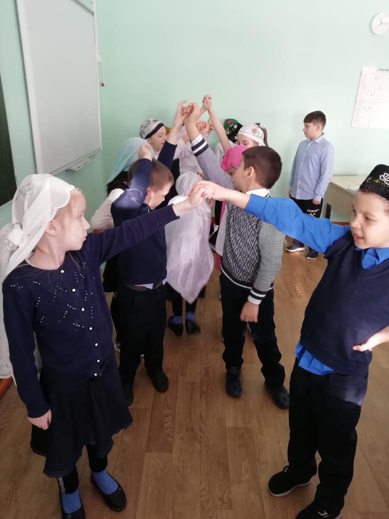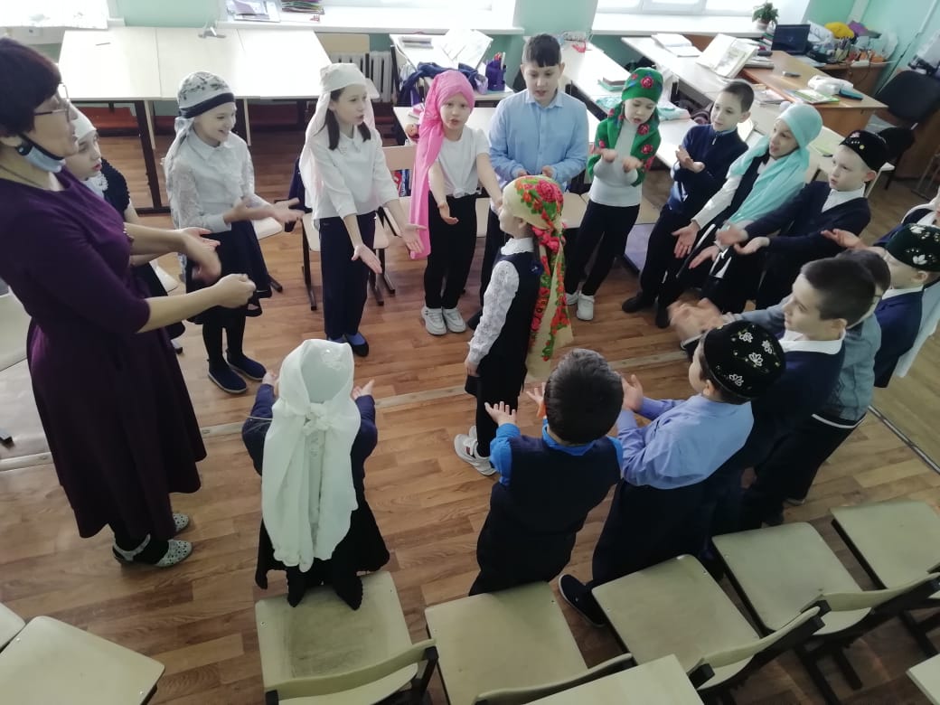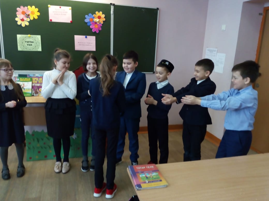 8февраля в МБОУ “Рыбно-Слободская гимназия №1” учителя родного языка и литературы Галиуллина Э.Р., Салахова Р.Г. провели урок в форме посиделок. Играли игры “Колечко”, “Ручеёк”, “Шляпа”. Задания были по теме “Существительное”.