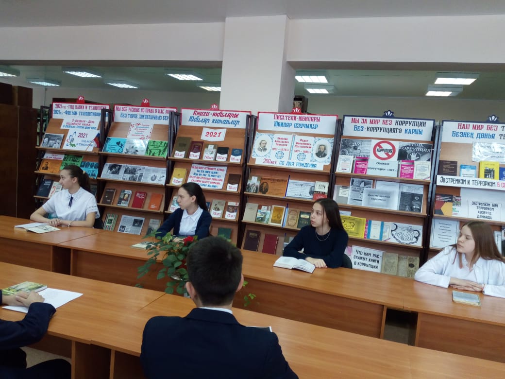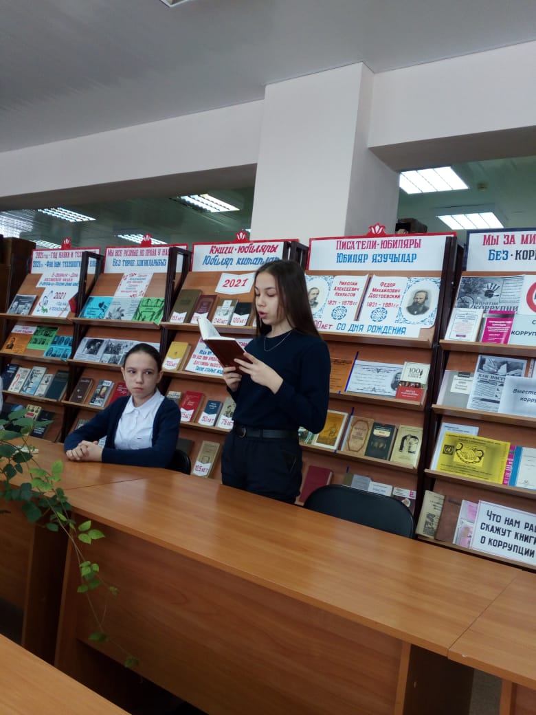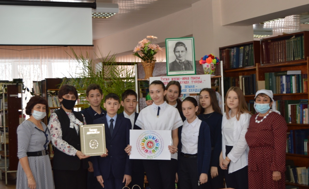 4 февраля в рамках Года родных языков и народного единства, ученики 8В класса МБОУ «Рыбно-Слободская гимназия№1» приняли участие в мероприятии «Родной язык – самый красивый язык!», которое было организовано Центральной районной библиотекой. На мероприятии ученики читали стихи и пели песню о родном языке. После встретились с книголюбами и получили в подарок книгу «татарский мир.