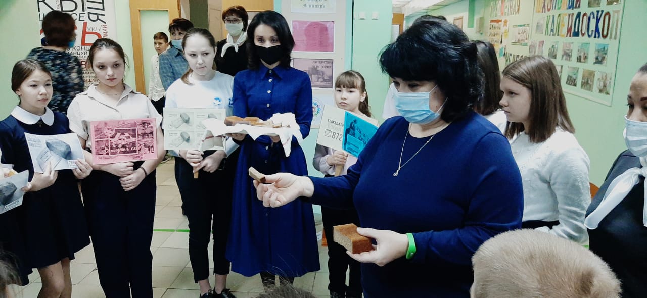 27 января в рамках недели русского языка, литературы и истории прошло мероприятие, посвящённое дню снятия блокады Ленинграда. В мероприятии приняли участие учащиеся 7-ых классов. Ведущие мероприятия и учитель русского языка и литературы Шакирова Айгуль Хамитовна рассказали присутствующим о книге Агнии Барто «Найти человека». Был просмотрен буктрейлер о данной книге, в котором рассказывалось о том, как писательница, работая на радио, вела поисковую деятельность тех людей, которые потерялись во время блокады Ленинграда. Были зачитаны отрывки из данной книги.Затем учащиеся 7-ых классов познакомили всех со своими школьными проектами, посвящёнными символам блокады Ленинграда: дороге жизни, дневнику Тани Савичевой и т.д. Учитель истории и обществознания Сунгатуллина Лилия Вакифовна рассказала о том, как долго длилась блокада Ленинграда, о том тяжёлом положении, в котором оказались люди, о их героизме. Ученица 7 Б класса выступила со стихотворением Э. Асадова «Чулочки». В конце мероприятия ребятам показали норму хлеба, который выдавался в день на 1 человека, рассказали, из чего его пекли. Под звук метронома были зажжены свечи в память о погибших в блокаду и проведена минута молчания.27 гыйнвар көнне рус теле, әдәбияты һәм тарих атналыгы кысаларында Ленинград блокадасын өзүгә багышланган чара узды. Чарада 7 нче сыйныф укучылары катнашты. Чараны алып баручылар һәм рус теле һәм әдәбияты укытучысы Шакирова Айгөл Хәмит кызы Агни Бартоның "кеше табарга" китабы турында сөйләделәр. Әлеге китап турында буктрейлер каралды, анда язучының радиода эшләве, Ленинград блокадасында калган кешеләрнең эзләү эшчәнлеге алып баруы турында сөйләнде. Әлеге китаптан өзекләр укылды.Тарих һәм җәмгыять белеме укытучысы Сөнгатуллина Лилия Вакыйф кызы Ленинград блокадасының ничек озак дәвам итүе, кешеләр булган авыр хәлләре, аларның батырлыгы турында сөйләде. 7 Б сыйныф укучысы Э.Асадованың «Чулочки»шигыре белән чыгыш ясады. Чара ахырында балаларга бер көнгә 1 кешегә бирелгән икмәк нормасын күрсәттеләр, аның нәрсә ашаганын сөйләделәр. Метроном тавышы астында блокадада һәлак булганнар истәлегенә шәмнәр кабынды һәм бер минут тынлык белән уздырылды.