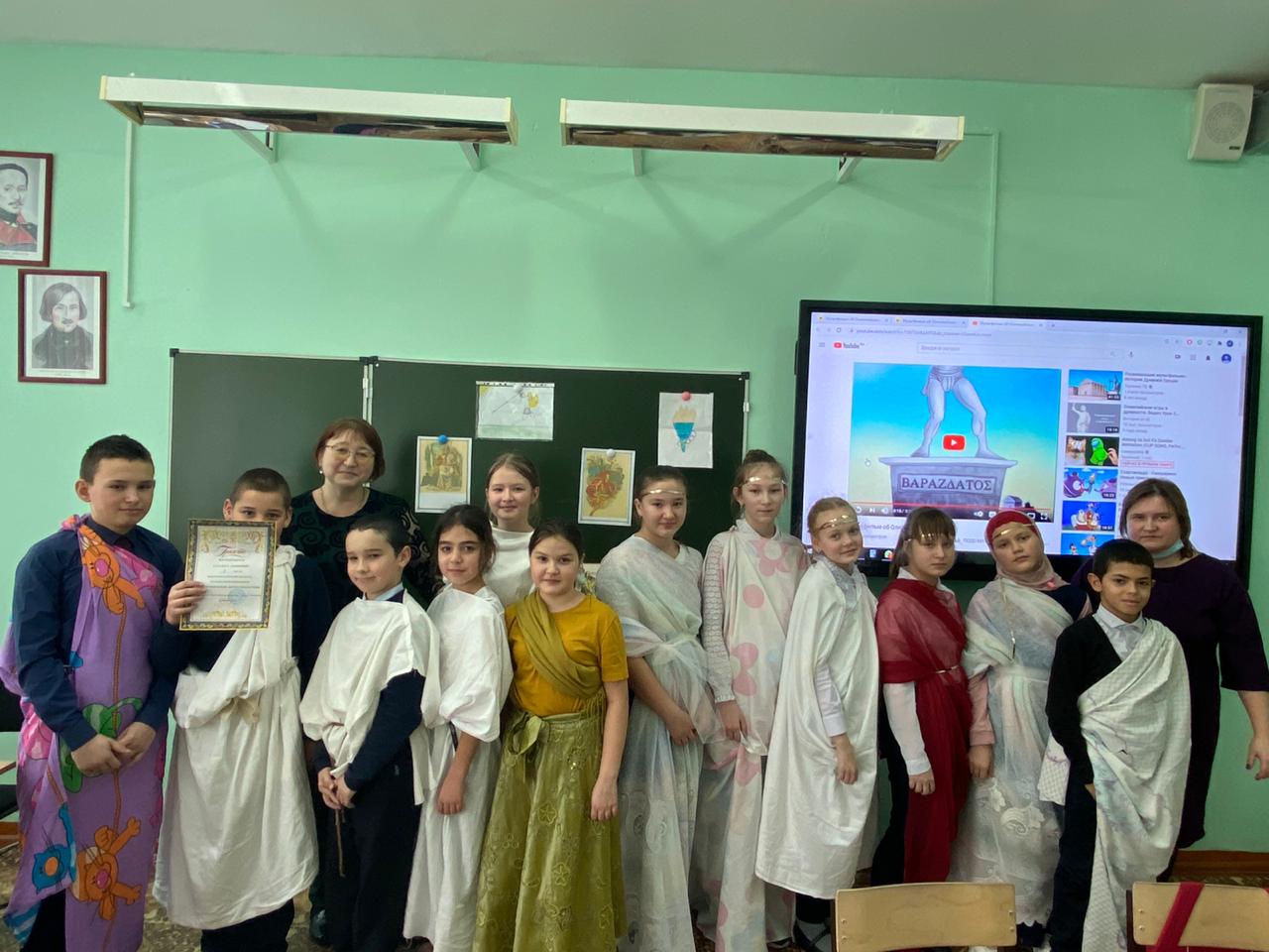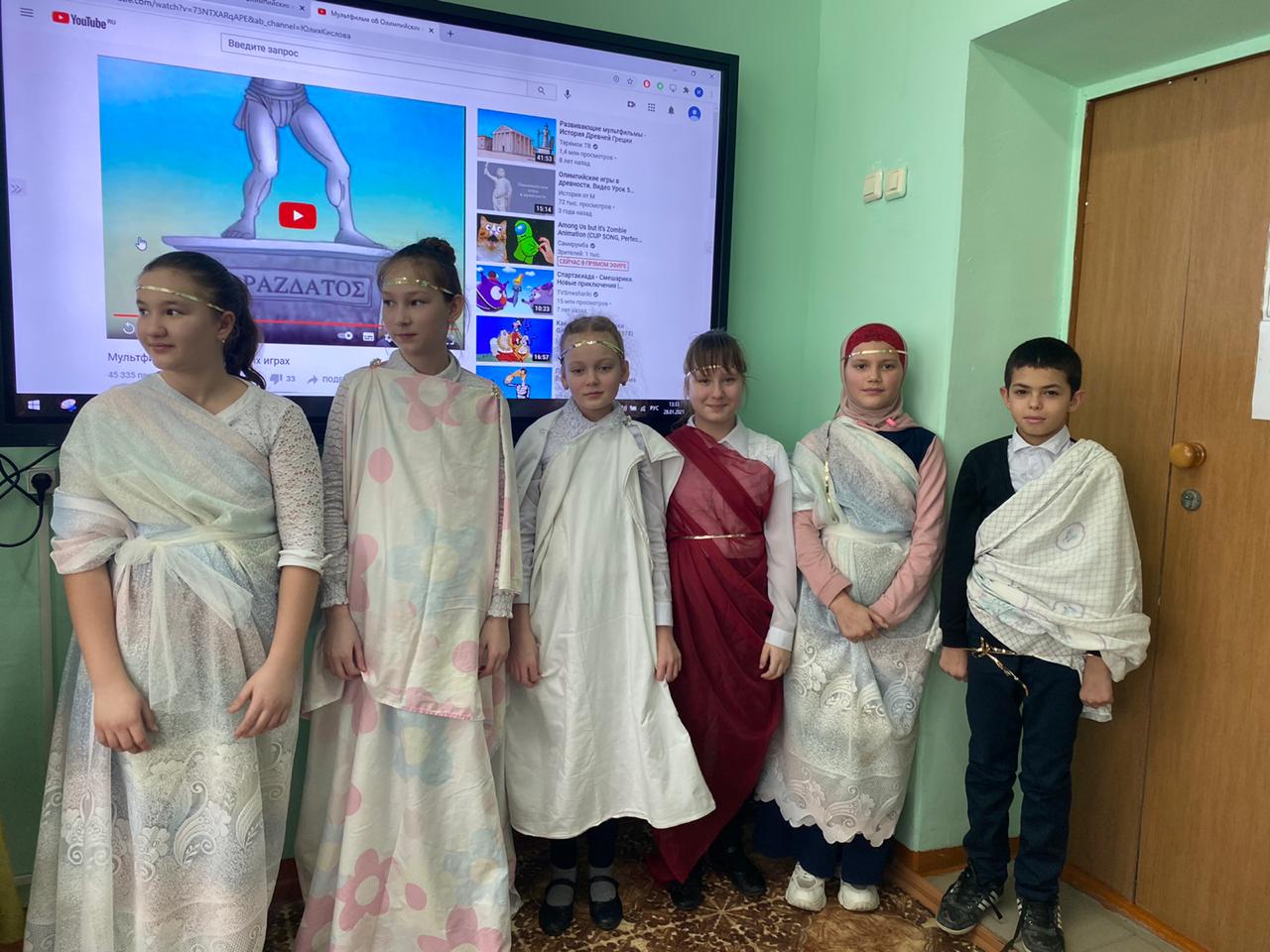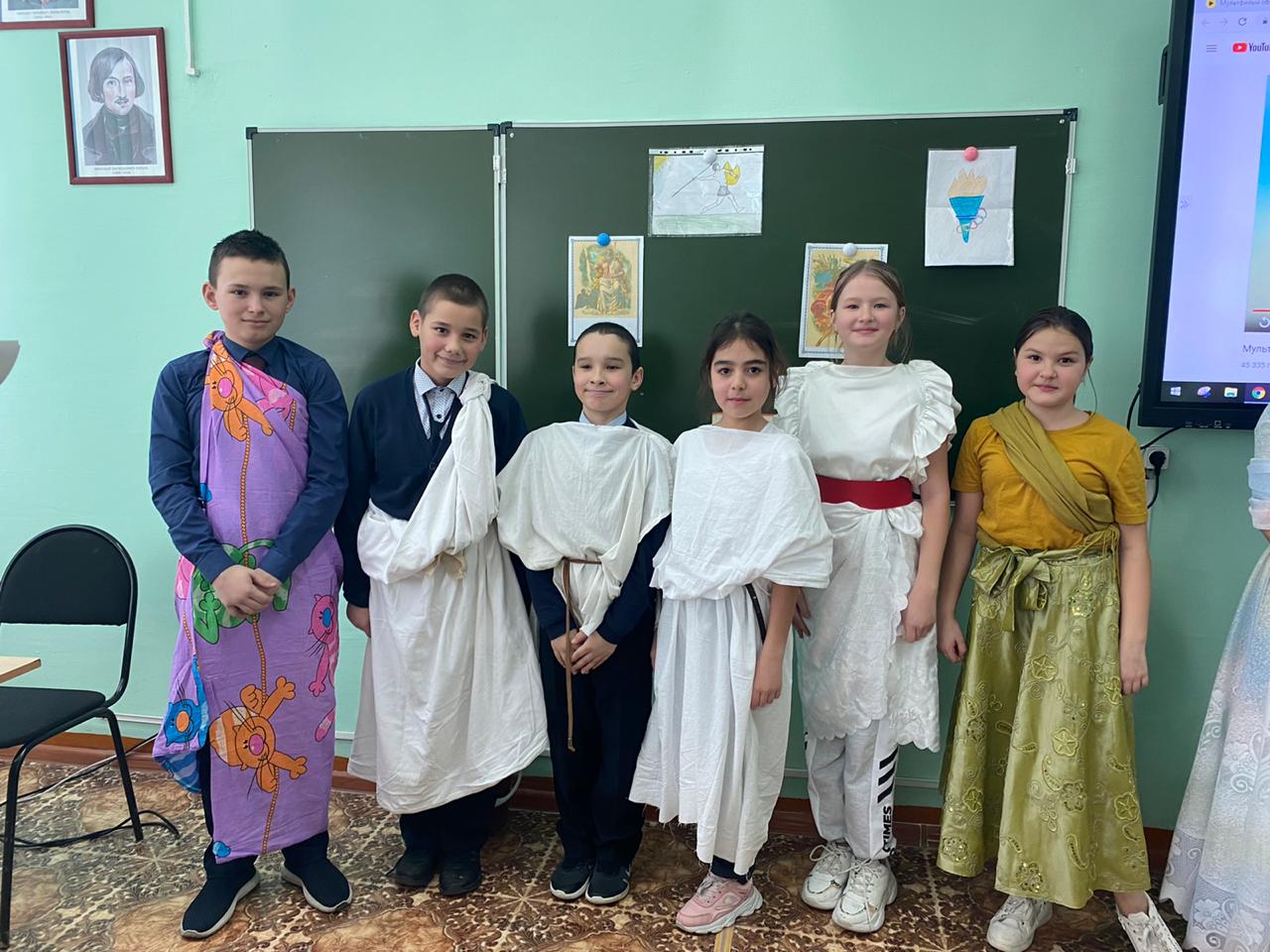 Интеграцияләнгән әдәбият һәм тарих атналыгы кысаларында 5 нче сыйныф укучылары арасында "Олимпия уеннары"дигән викторина үткәрелде. 5 А һәм 5 Б сыйныфларының ике командасы үзара олимпия спорт төрләрен, аларның барлыкка килү тарихын белүдә ярыштылар, Борынгы Греция мифлары белән бәйле фразеологизмнар чиштеләр. Барлык командалар да лаеклы чыгыш ясадылар, әмма берничә баллга өстенлек белән 5 А сыйныфы командасы җиңде. Чарада шулай ук Олимпия уеннары яңартылуга 125 ел тулуга багышланган рәсем конкурсында җиңүчеләр дә бүләкләнде.