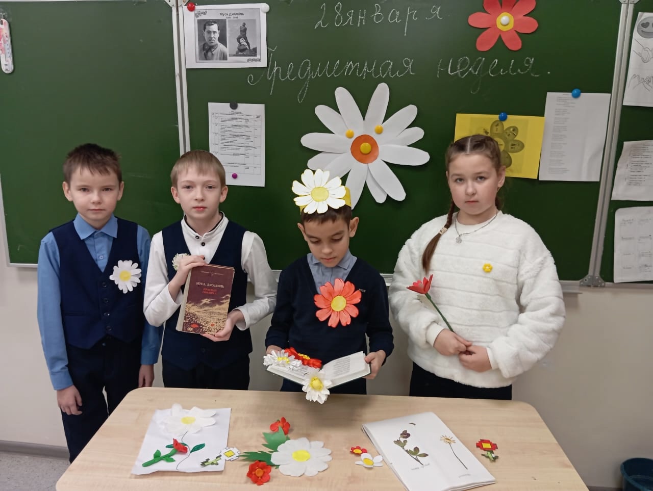 28 января в МБОУ «Рыбно-Слободская гимназия №1» проходил второй день интегрированной предметной недели начальных классов, географии, химии, биологии. Этот день прошёл под названием «Красная ромашка». Учителя начальных классов провели литературный час «Символ чести и мужества». Ребята узнали о суровых фронтовых буднях поэта Мусы Джалиля, о страшном времени, проведённом им в фашистских застенках, где единственным его оружием были его стихи. Ни жестокие пытки, ни камера смертников не сломили волю поэта.
