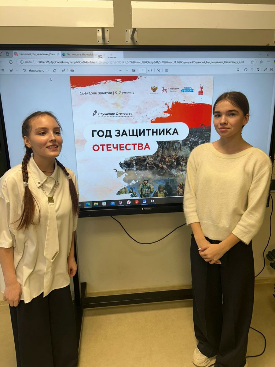 Сегодня прошло особенное занятие из цикла «Разговоры о важном», посвященное 2025 году, который был объявлен Президентом России Годом защитника Отечества. Этот год совпадает с 80-летием Великой Победы, что придаёт ему особое значение. На уроке педагоги обсудили с ребятами важные вопросы: кого можно назвать защитником Отечества и почему. Вспоминали подвиги героев, как исторических, так и современных.