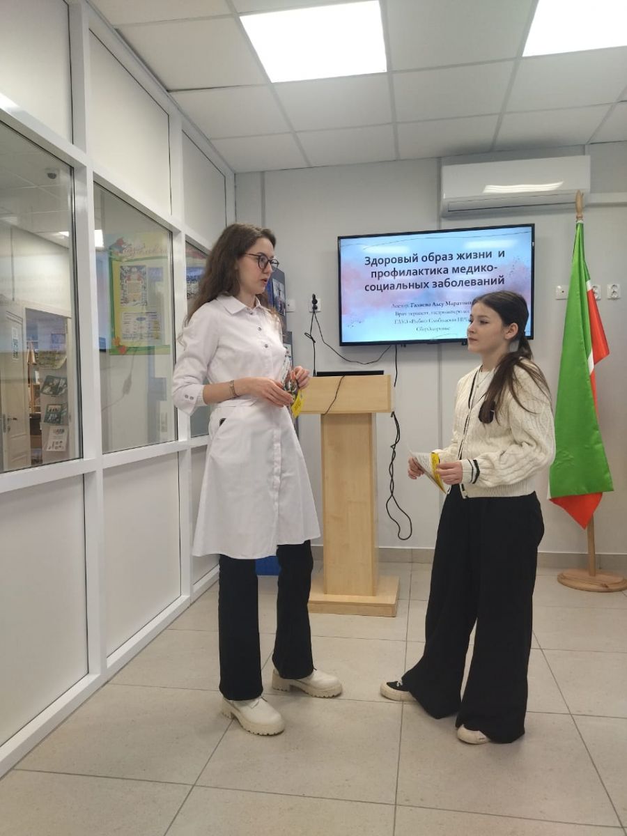 Бүген гимназиябездә мөһим очрашу булды!Гимназиябезгә Балык Бистәсе үзәк хастаханәсенең медицина хезмәткәрләре: табиб-терапевт Галиева Алсу Марат кызы һәм шәфкать туташы Галимова Азалия Рамил кызы килде. 8 класс укучылары өчен сәламәт яшәү рәвеше һәм медик-социаль авыруларны профилактикалау темасына мавыктыргыч әңгәмә үткәрелде.