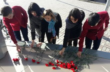 Сегодня учителя и учащиеся МБОУ "Рыбно-Слободская гиназия № 1" возложили цветы в память о трагедии, произошедшей 17 октября в одном из техникумов г. Керчь. -