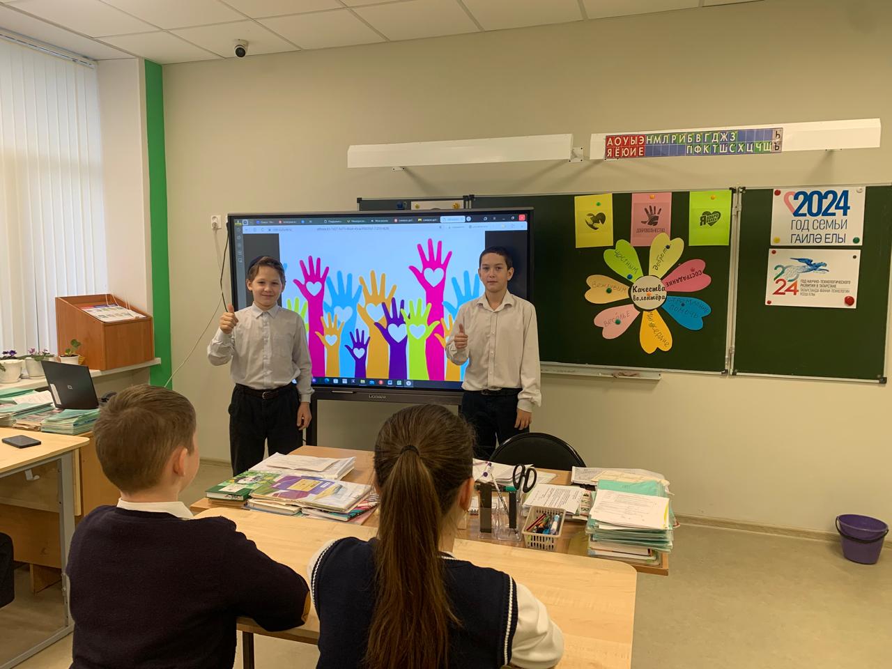 В нашей гимназии классный руководитель 5Б класса Горшкова Р.А провела классный час «Я доброволец, а также советник Яруллина Г.И совместно с участниками «Движения Первых» провели квест в 4А классе.