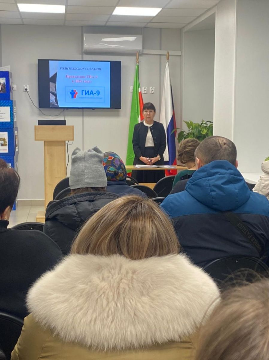 11 нче декабрь көнне 9 нчы сыйныфны тәмамлаучыларның ата-аналары өчен ата-аналар җыелышы булды. Директор урынбасары Р.К. Сафина ата-аналарга тугызынчы сыйныф укучыларын имтиханнарга әзерләү ысуллары, имтиханнарга керү өчен кирәкле шартлар, имтихан үткәрү тәртибе турында мәгълүмат җиткерде. 9 нчы сыйныфларда эшләүче предметчылар ата-аналарны сынау имтиханнары нәтиҗәләре белән таныштырдылар.