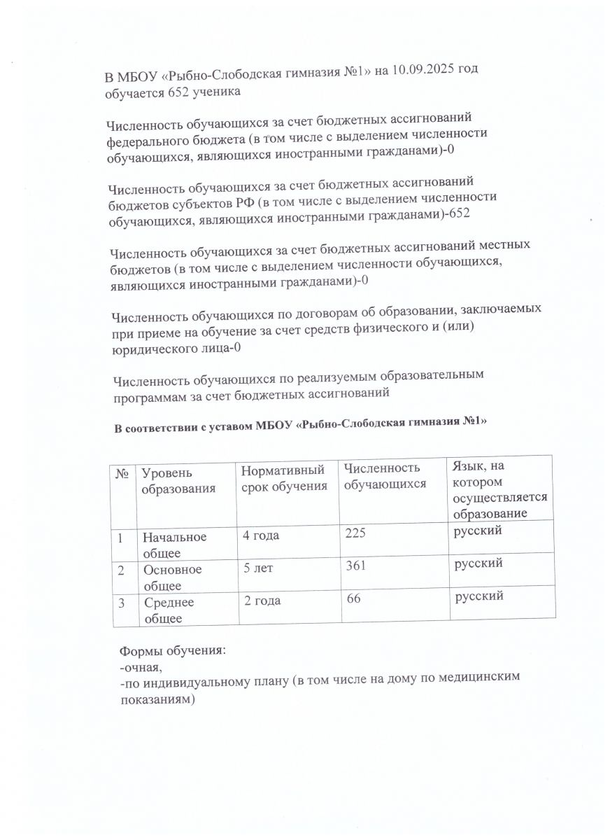 У нас учатся: 653 учащихся / 653 укучы, из них 3 иностранных граждан