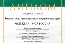 Воспитанники кружка «Основы лидерства» участвовали в региональном конкурсе научно-исследовательских, методических и творческих работ «Мой край- моя Россия» и награждены дипломом 1 степени. Поздравляем!