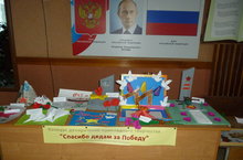 Мәктәбебездә Бөек Җиңүнең 70 еллыгына карата башлангыч сыйныф укучыларының “Спасибо дедам за Победу!” дип исемләнгән кулдан эшләнгән эшләр күргәзмәсе эшли башлады.
