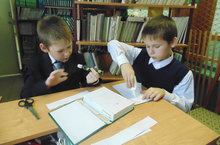 В школьной библиотеке идет акция «Живи книга» по ремонту библотечных книг. Ученики 3-4 классов активно участвуют в акции.