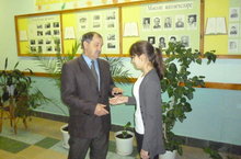 Хуҗаханова Зәлиягә 2014 нче елда мәктәпне гел "5" билгеләренә тәмамлап "Укуда ирешелгән уңышлары өчен" алтын медален тапшыру.