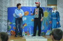 17нче май көнне башлангыч сыйныфлар өчен күңелле тамаша күрсәтелде. Мәктәбебезгә Габдулла Кариев исемендәге Казан татар дәүләт яшь тамашачы театры килде. Алар безгә Светофор турында әкият күрсәттеләр. Әкият геройлары балаларга юл билгеләрен, юлда йөрү кагыйдәләрен искә төшерергә булыштылар. Балалар Айдар белән Аленага югалган Актүшне табарга ярдәм иттеләр. Кагыйдәләрне үтәмәгән Актүш бәлага очрап имгәнгәч аны бик кызгандылар. Ә юл билгеләрен һәм юлда йөрү кагыйдәләрен тамаша дәвамында Светофор Сфетофорович искәртеп, аңлатып барды.