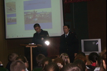 Именно с этой же целью 17.09.2013 г. нашу школу посетили инспектор ПДН Отдела МВД России по Рыбно-Слободскому району майор полиции Новикова М.И, инспектор ГИБДД по исполнению административной практики Отдела МВД России по Рыбно-Слободскому район ст. лейтенант полиции Хаматвалеев Р. Д. и директор МБУ «Центр молодёжных (школьных) формирований по охране общественного порядка «Форпост» Рыбно-Слободского муниципального района РТ» Ненастьев Е.А. в сопровождении УУП Отдела МВД России по Рыбно-Слободскому району капитана полиции Гиниятов И.М.