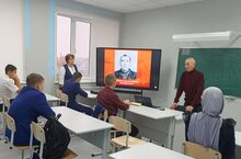 Шушы уңайдан, тарих һәм җәмгыть белеме атналыгы кысаларында тарих укытучысы Степанова Л.В. белән берлектә, 10 нчы сыйныфлар өчен гаепсезгә корбан ителгән Шәрифуллин Әгъзәмулла Шәрифулловичның оныгы – Булат Асгарович Каюмов катнашында очрашу-дәрес үткәрделәр.