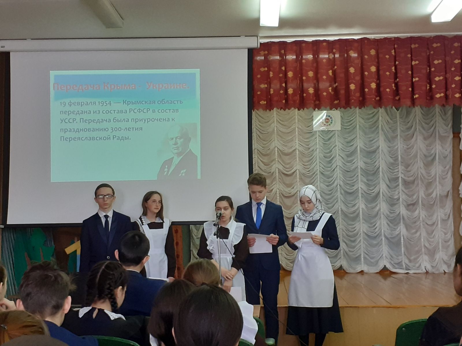 Кырымның Россия белән кушылуы көне уңаеннан «Бердәмлектә безнең көч!», дип исемләнгән тарихи чара үтте. Анда 8-11 сыйныф укучылары Кырым ярымутравының барлыкка килү тарихы, 2014 елның 18 мартындагы референдум нәтиҗәләре белән таныштылар. Кырымга виртуаль экскурсия ясадылар.