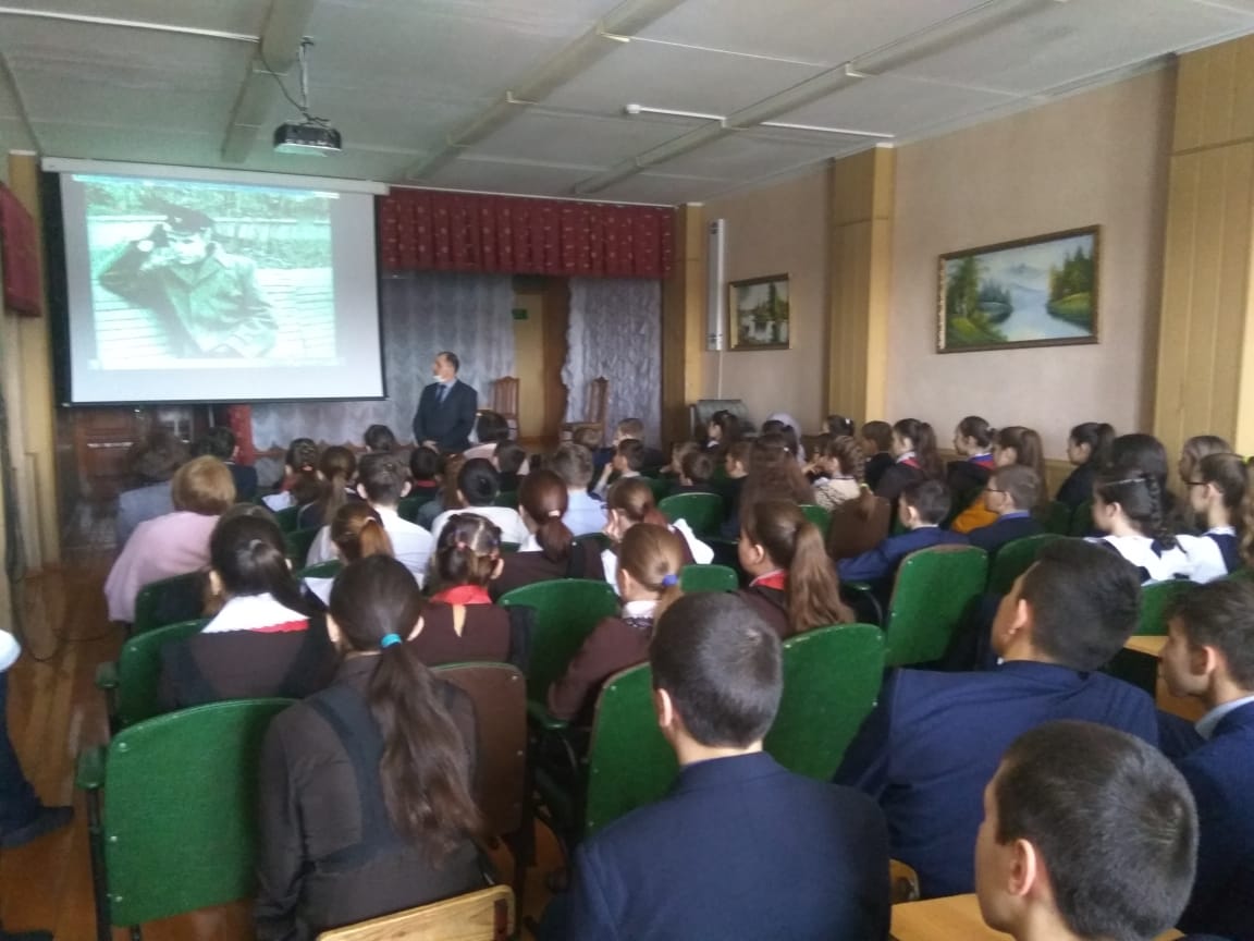 В связи с этим учителя географии Салахиев Н.Ю., физики Салахиева Р.Н. провели общешкольный классный час. Ознакомили информацией, которые имеются в краеведческом музее школы. На презентации показали труды наших выпускников школы, внесших большой вклад в космонавтику.