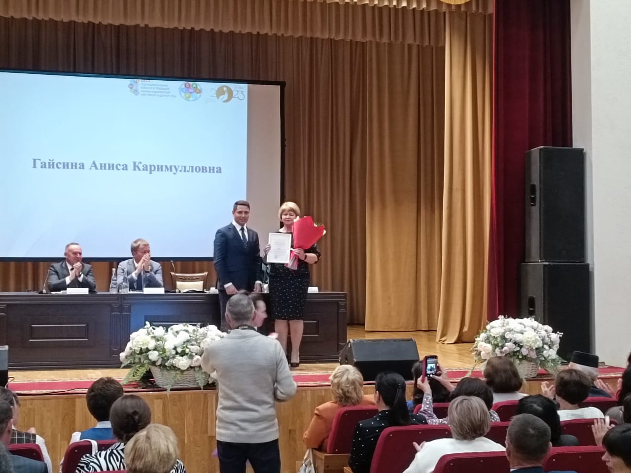 Опубликовано: 21.08.2023Награждена Почётной Грамотой МНиО РТ Гайсина А.К., учитель истории и обществознания. Салахиев Н.Ю. , директор школы выступил на августовской конференции учителей района о работе центра Точка роста.