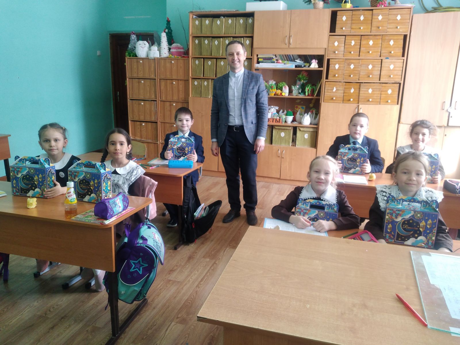 В честь праздника Ураза-байрам учащимся 1-8 классов были розданы сладкие угощения. Организатором мероприятия выступил Раиль хазрат Файзрахманов-учитель прихода мечети "Ахметхан Хази" села Табердинские Челны Рыбно-Слободского района.Все ученики были в восторге от гостинцев.Желаем успехов в добрых делах.