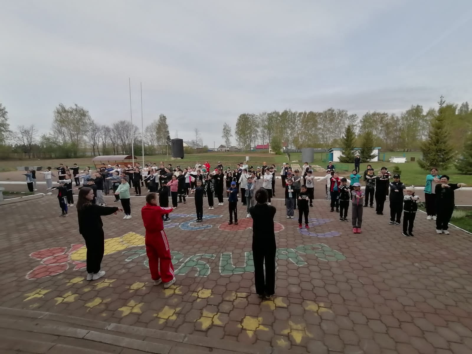 Опубликовано: 27.04.2024Общешкольная утренняя зарядка в рамках подготовки сдачи норм ГТО